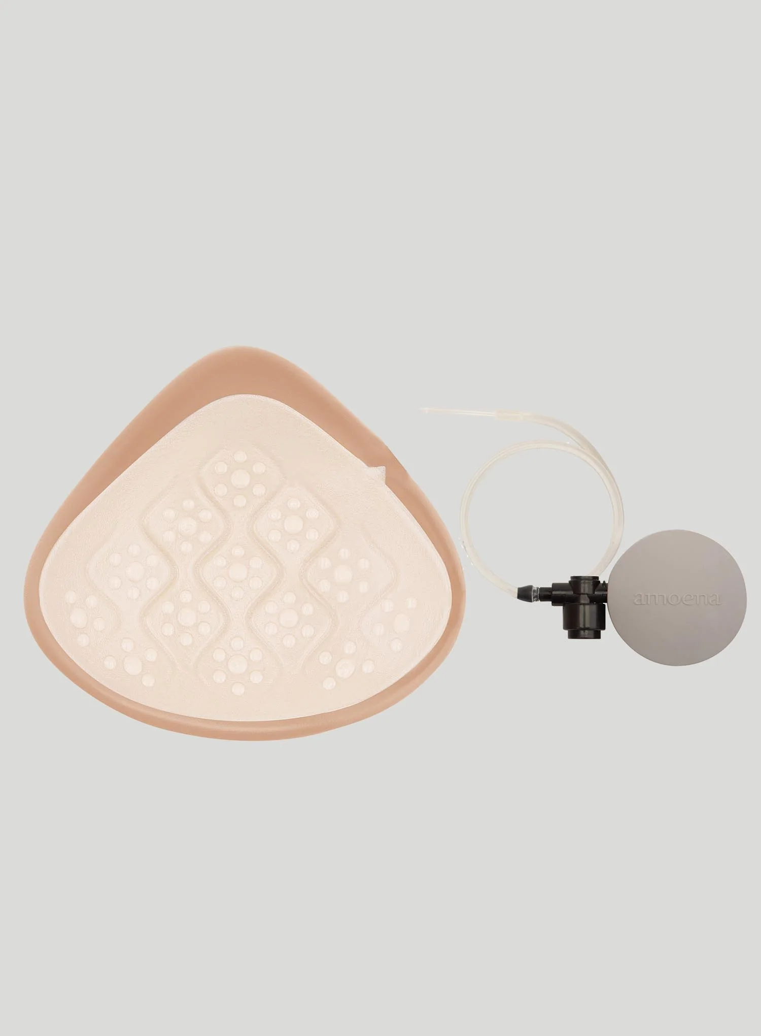 AMOENA Adapt Air is the impressive new individually adjustable breast form, now in this new, extra light edition! This piece can be adjusted simply by adding or releasing air at any time with an included personal air pump. With innovative air chamber technology, this form is able to be personalised to any chest wall for a natural fit and perfect skin contact. This extra light design includes soft InTouch Light silicone, 40% lighter than a regular weighted breast form in the same size. An included personal air pump