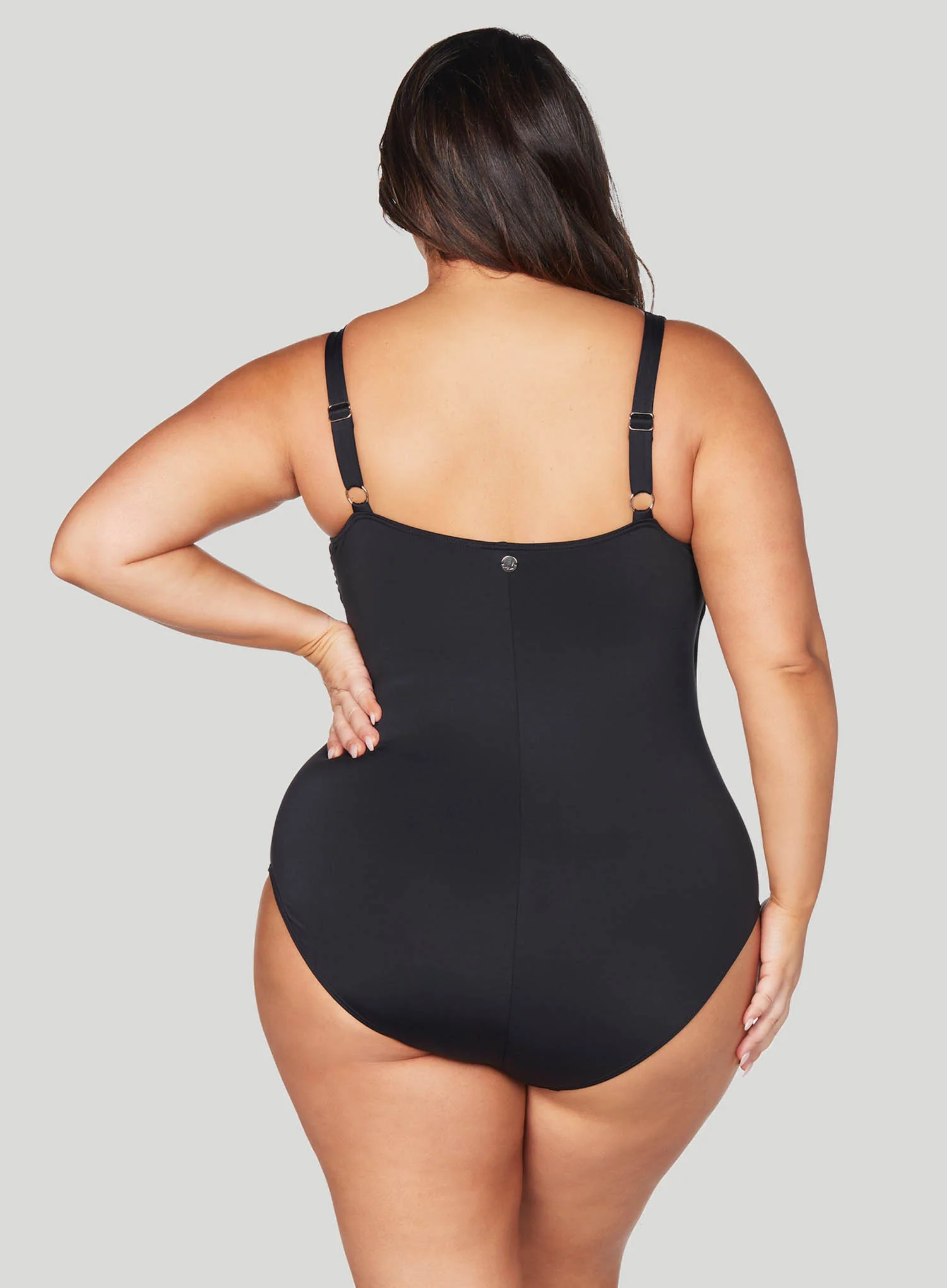 ARTESANDS. Hues Hayes Underwire One-Piece Swimsuit offers shape, style, and undeniable support. The completed draped wrap around the front with a mock tie creates an hourglass shape. Featuring ruching for tummy disguising, a hidden front shelf bra with underwire support for D-E cup sizes, full-body 360-degree powermesh lining, and wide straps for your extra comfort. Finally, a swimsuit design that complements curves and leaves you feeling confident. What more could you ask for?