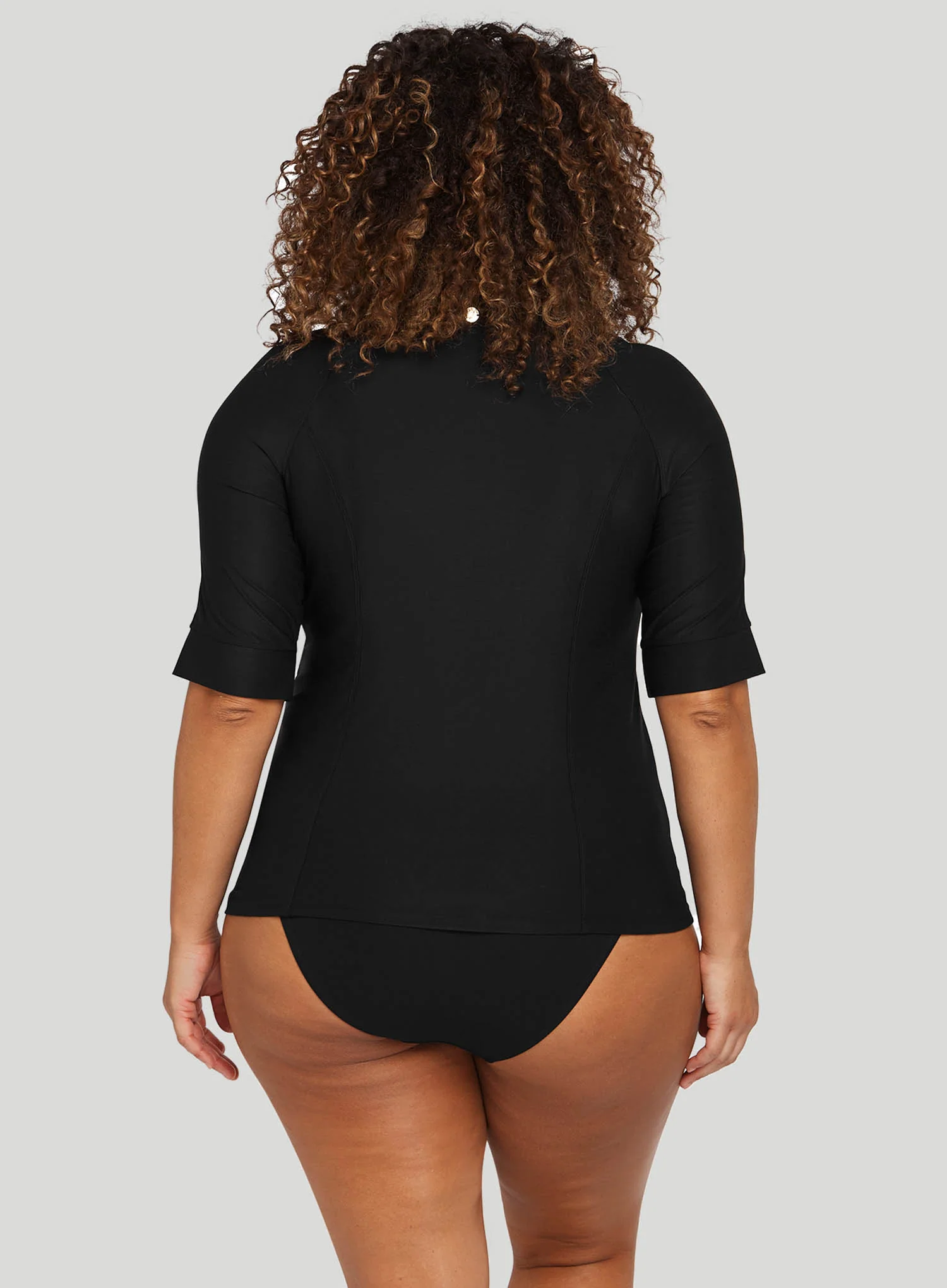 ARTESANDS. Hues Sunsafe Top features raglan sleeves and shaping panels for a flattering fit. Cuffed, mid length sleeves provide protection without covering up completely and the full length zip allows you to coverup as much or as little as you line. This top is UPF 50+.