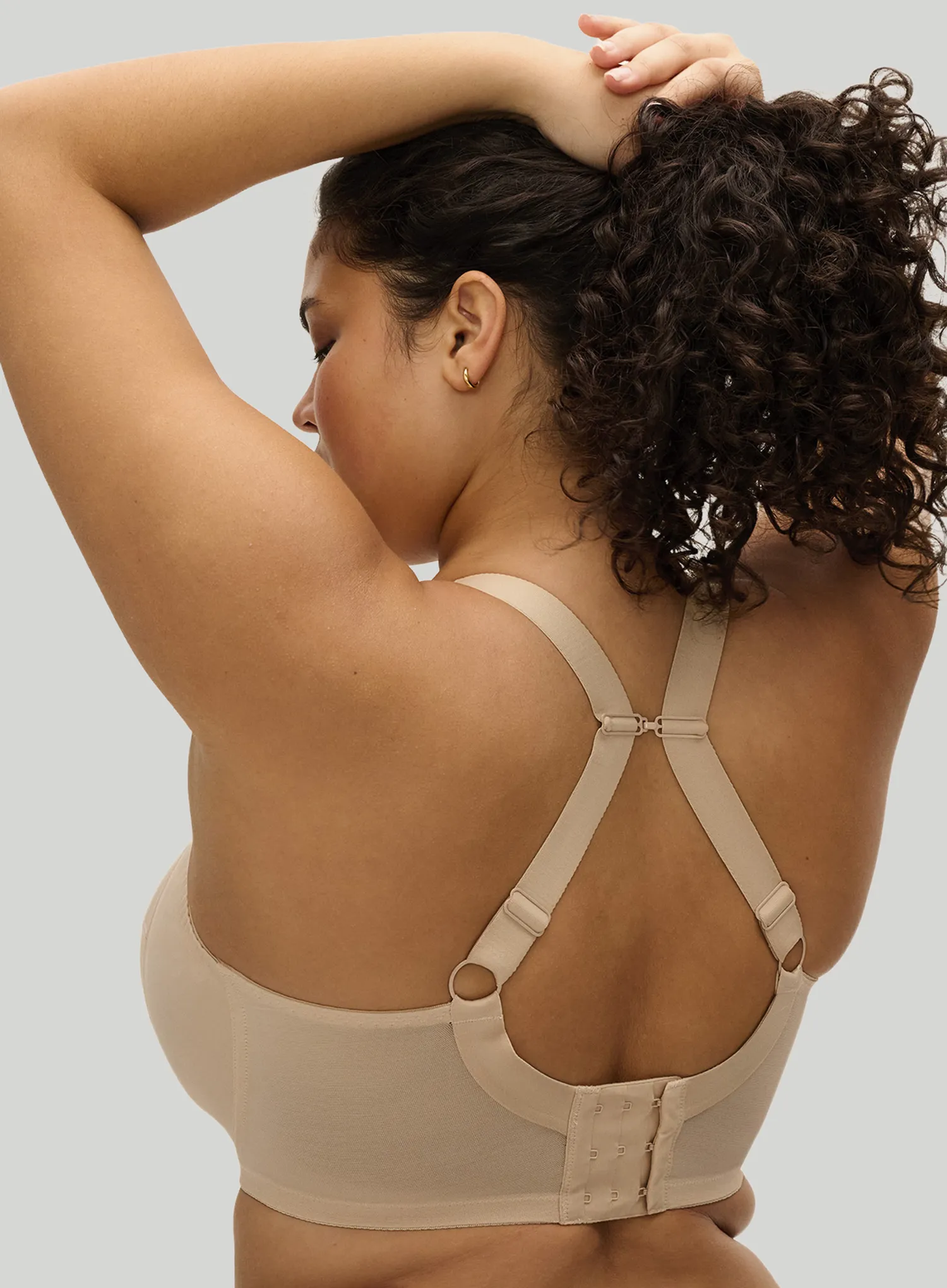 ELOMI Energise Underwired Sports Bra has unique non-compression technology, complete bust separation for shaping and ultimate support. The soft fold-over elastic applied to the under band will minimise chafing. Available permanently to the Energise collection in Nude.