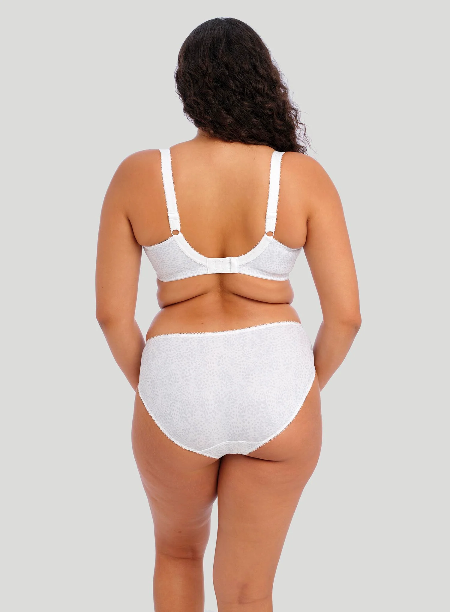 ELOMI Morgan Underwired Bra offers unprecedented support, now available in a white print with subtle silver/grey flecks and a permanent addition to the Morgan range. DeBra's presents a variety of colours for this signature print collection featuring a three-section cup with a side frame for the perfect fit and desired forward shape. With its powerful stretch lace and decorative bow detail, the Morgan signature collection is known for its comfort and style.