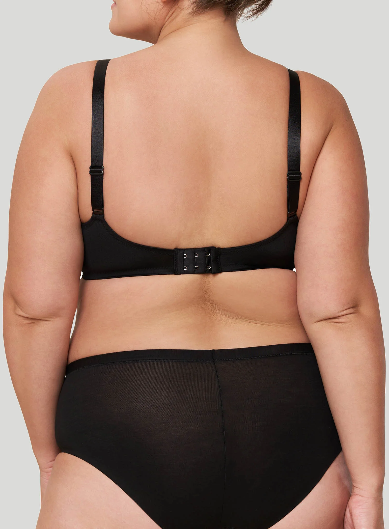 TRIUMPH Contouring Sensation Minimiser Bra in Black is fun and flirty whilst it is designed to reduce the appearance of your bust by one cup size.